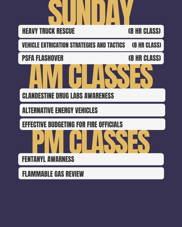 Join us for two days of hands-on fire service training with experienced instructors and a full lineup of courses designed to sharpen skills and build knowledge for today’s fire service.